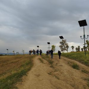 Hanno attraversato l’impianto di atletica e rugby Antonio Nori ragionando su come le attività sportive abbiamo mantenuto saldo il rapporto con quel territorio, battendo i sentieri con gli allenamenti podistici, facendolo diventare di fatto, nel tempo, un Parco Urbano. Si sale lungo un sentiero per arrivare al punto più alto del Parco prendendo atto di come quella sterrata sia quasi impraticabile per i podisti. Da lì si coglie l’estensione dell’Acquedotto Alessandrino che sulla sommità s’interra: sono nel tratto della “mai nata passeggiata alessandrina” emblema di una promessa non mantenuta, come anche il mancato recupero dell’antica Cisterna romana. Da lì sono arrivati alla “distrutta” piazza dell’Acquedotto Alessandrino che appare come il fantasma di una delle Centopiazze rutelliane, inizialmente qualificanti (con una fontana mirabile ma ormai inceppata) e ora desolanti. Procedendo attraversano altro abbandono con aree sommerse dall’immondizia e infine il teatro del Parco di Tor Tre Teste, troppo sottoutilizzato per via di un’impiantistica inadeguata. Il walkabout rileva quindi criticità ma al contempo rilancia l’opportunità di uno sguardo partecipato messo in gioco da comunità territoriali che non aspettano altro che di essere ascoltate per contribuire alla valorizzazione di un Bene Comune.